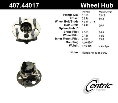 Centric 407 44017 Rear Wheel Hub and Bearing Assembly